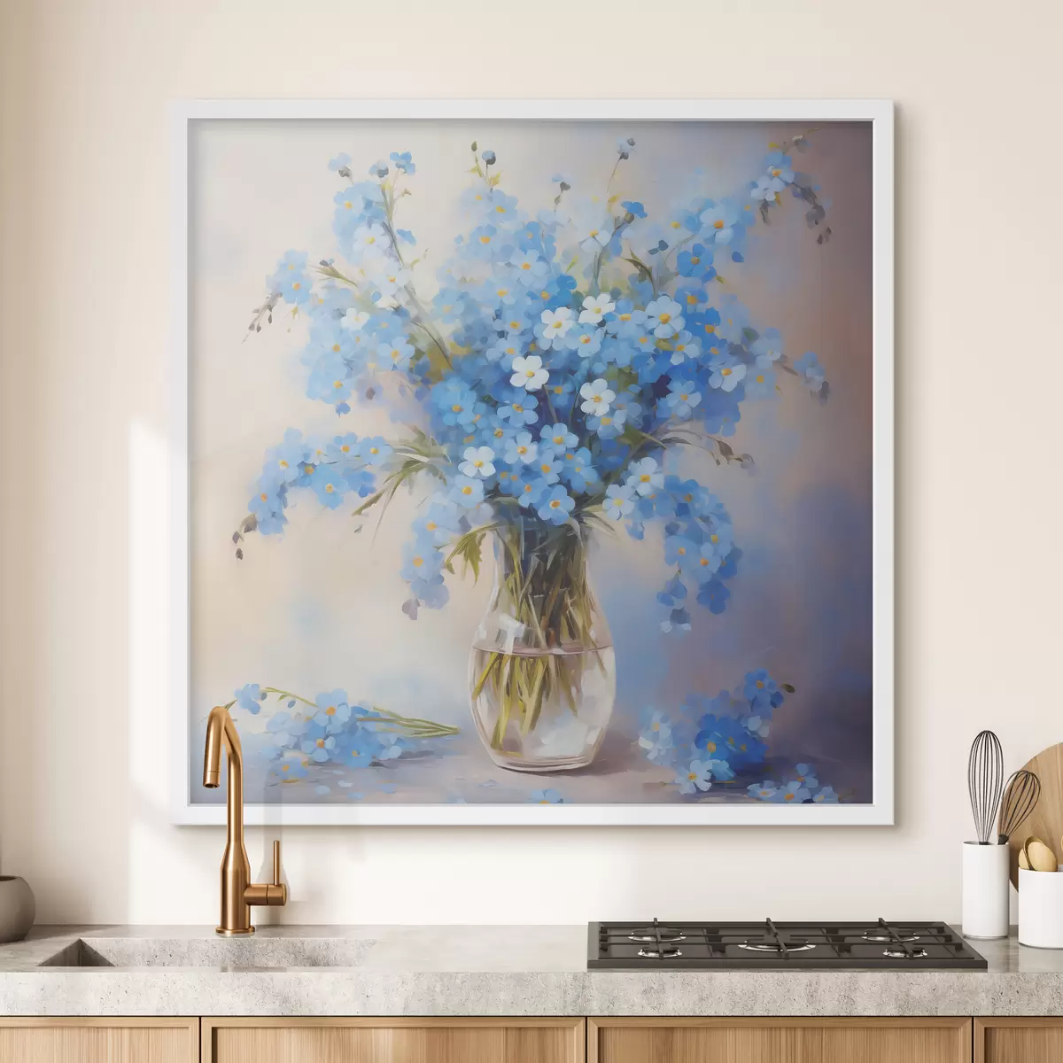 Poster Ramo de flores silvestres azules en una jarra de vidrio pintura al óleo Nr f39331