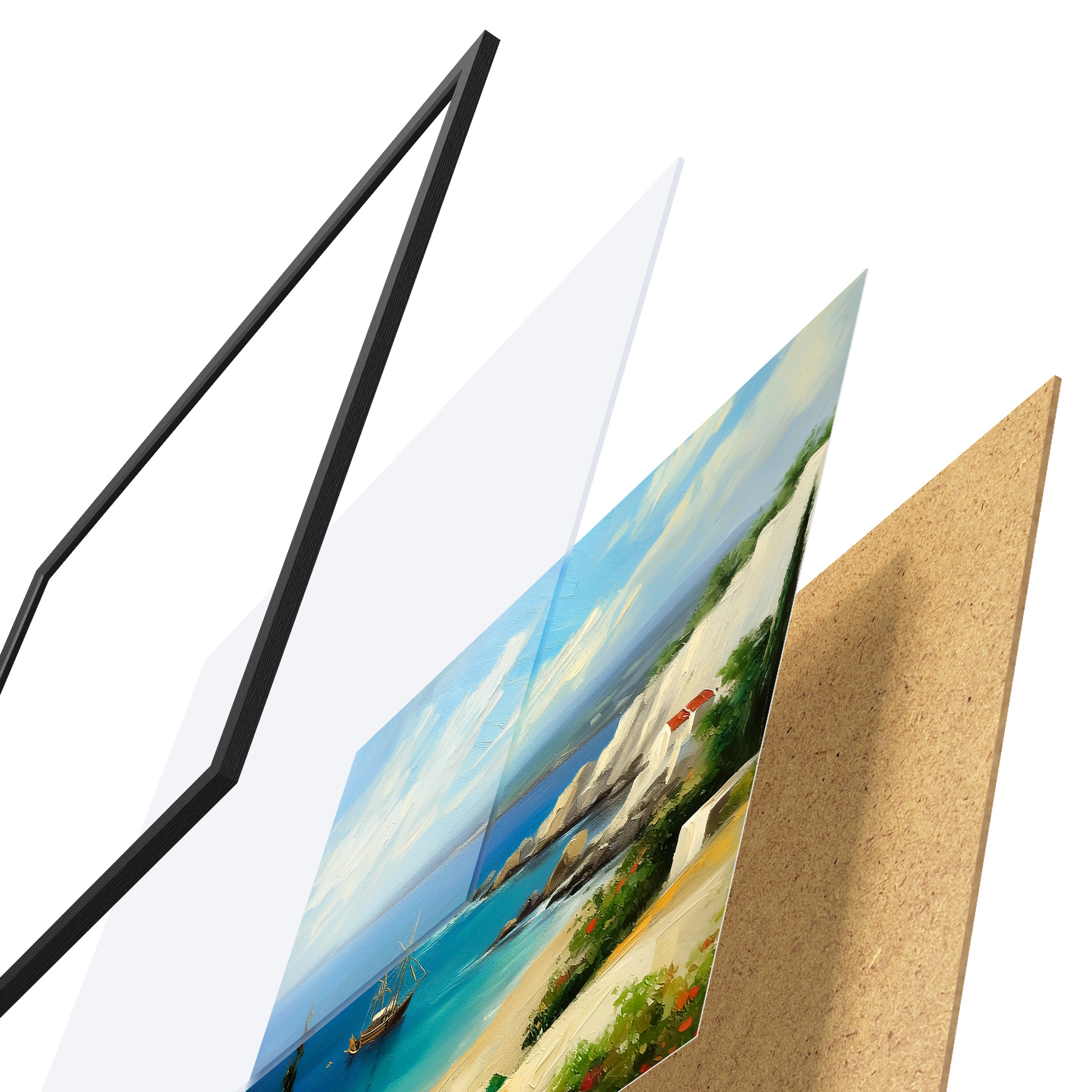 El póster consta de marco, plexiglás, imagen impresa y soporte de aglomerado. El póster puede colgarse inmediatamente en la pared gracias a los soportes de la parte posterior.