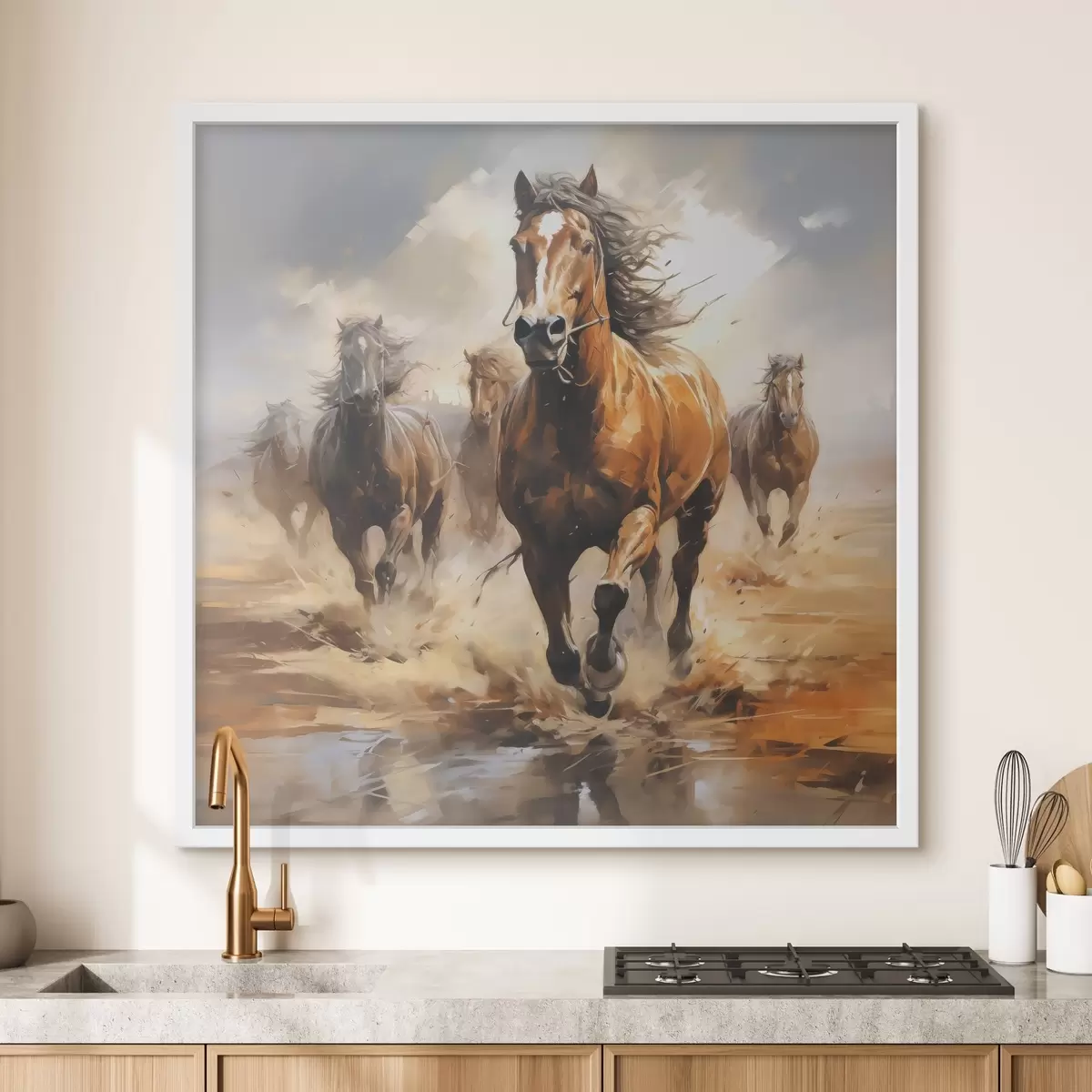 Poster Caballos al galope en el prado pintura al óleo Nr f39436