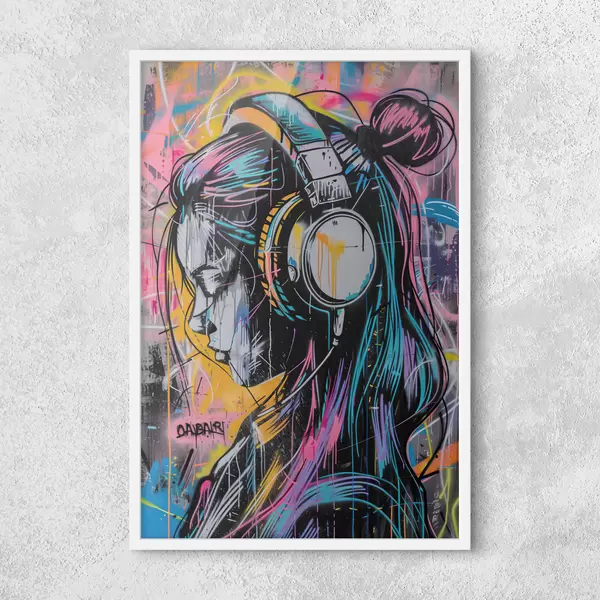 Poster Mujer con auriculares en estilo graffiti Nr f39443
