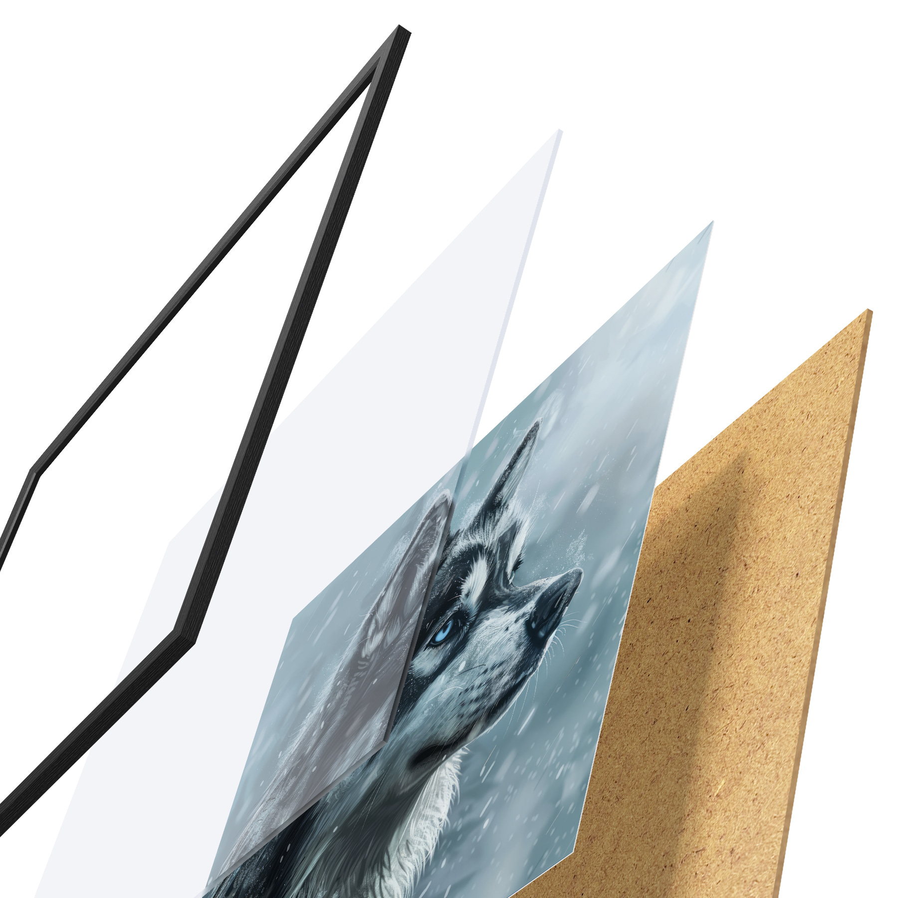 Poster Husky con ojos azules sobre fondo azul invernal Nr f39462