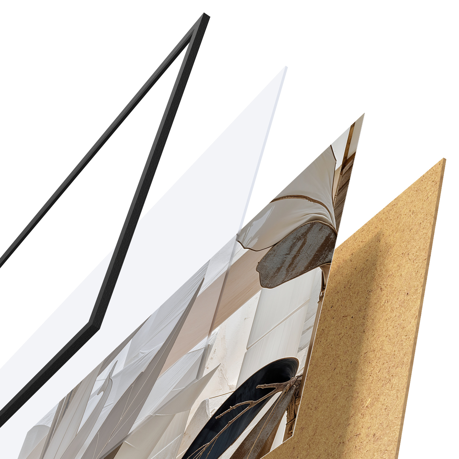 El póster consta de marco, plexiglás, imagen impresa y soporte de aglomerado. El póster puede colgarse inmediatamente en la pared gracias a los soportes de la parte posterior.