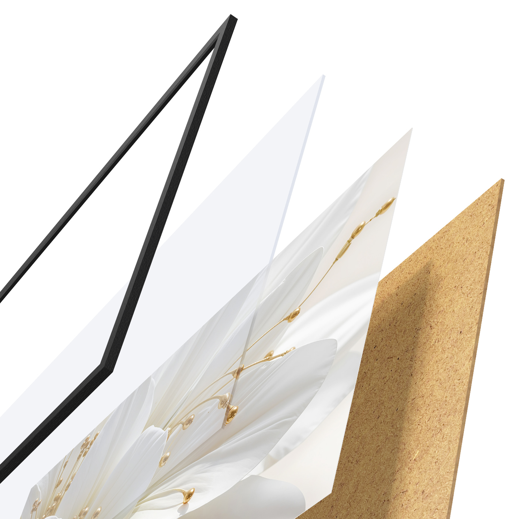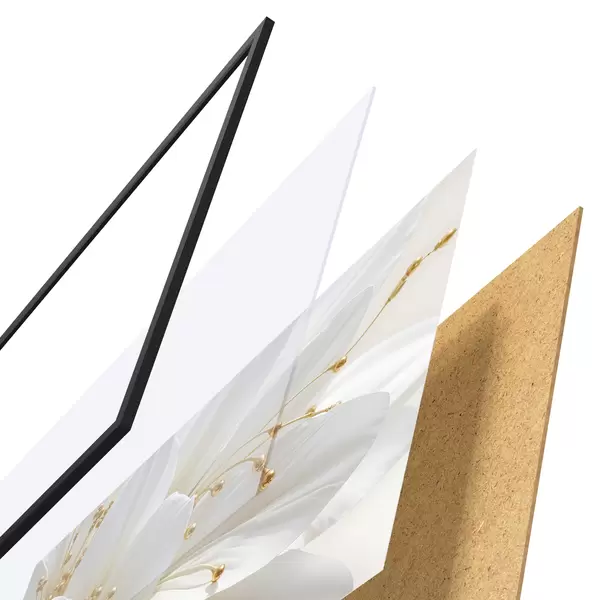 El póster consta de marco, plexiglás, imagen impresa y soporte de aglomerado. El póster puede colgarse inmediatamente en la pared gracias a los soportes de la parte posterior.