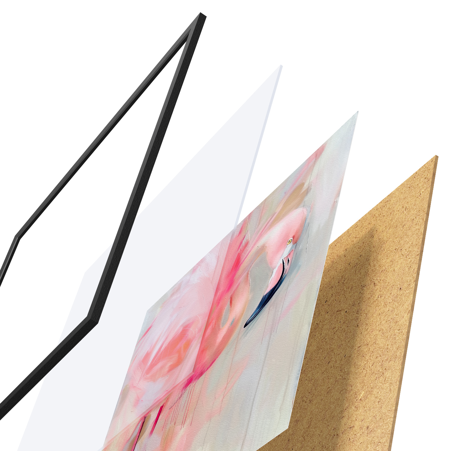 El póster consta de marco, plexiglás, imagen impresa y soporte de aglomerado. El póster puede colgarse inmediatamente en la pared gracias a los soportes de la parte posterior.