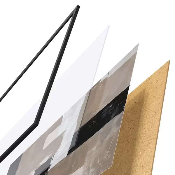 El póster consta de marco, plexiglás, imagen impresa y soporte de aglomerado. El póster puede colgarse inmediatamente en la pared gracias a los soportes de la parte posterior.