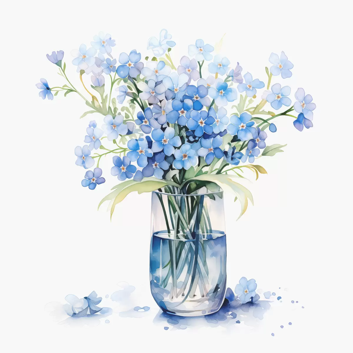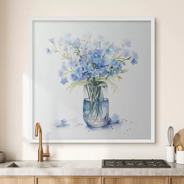 Poster Un ramo de flores azules en acuarela transparente en un jarrón Nr f39564