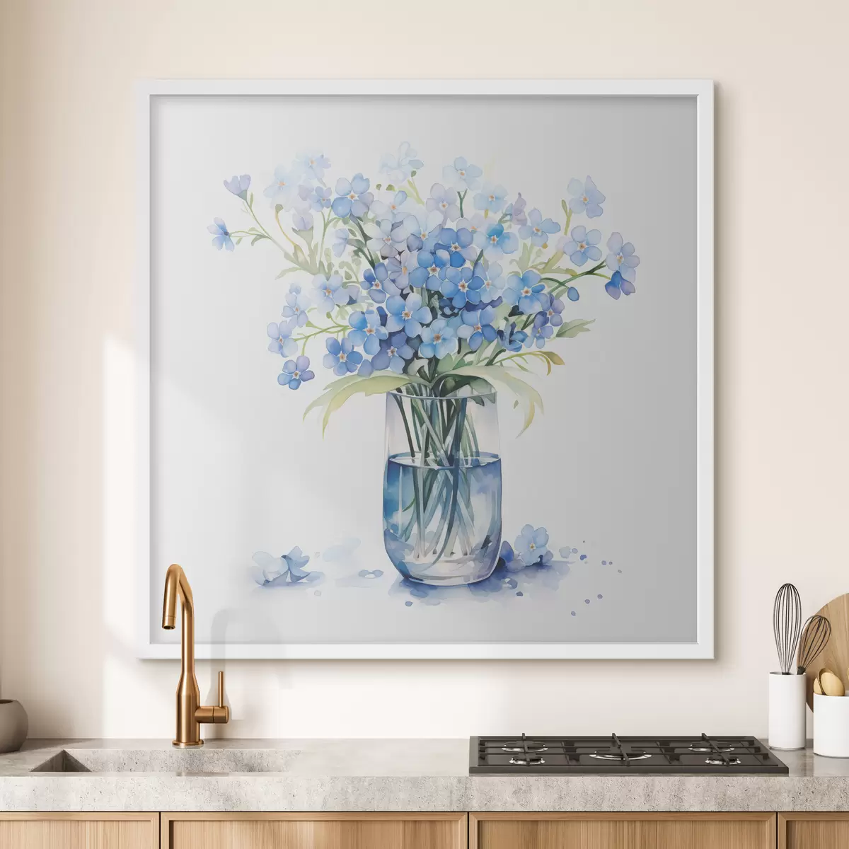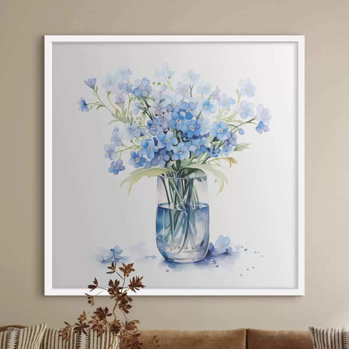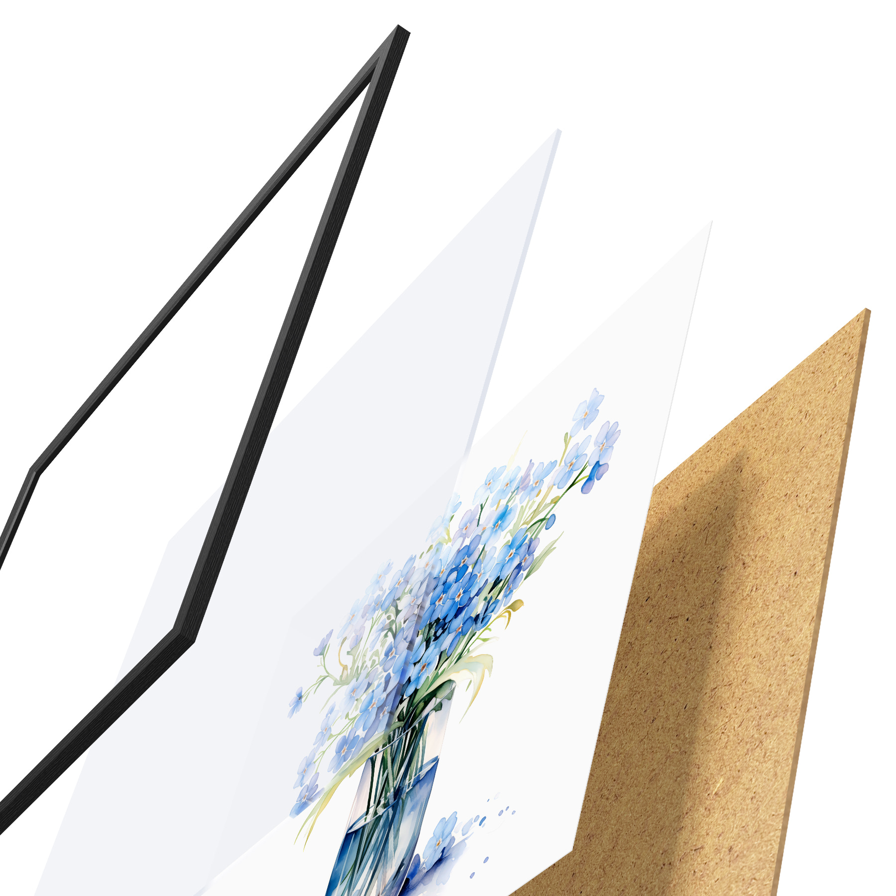 Poster Un ramo de flores azules en acuarela transparente en un jarrón f39564