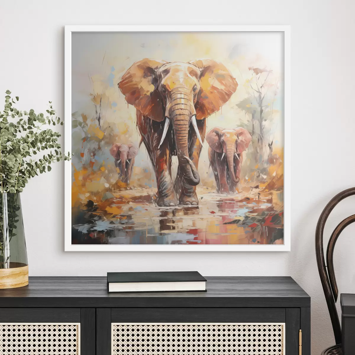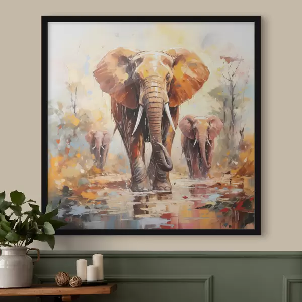 Poster Una manada de elefantes entre la sabana, pintura al óleo, arte abstracto Nr f39573