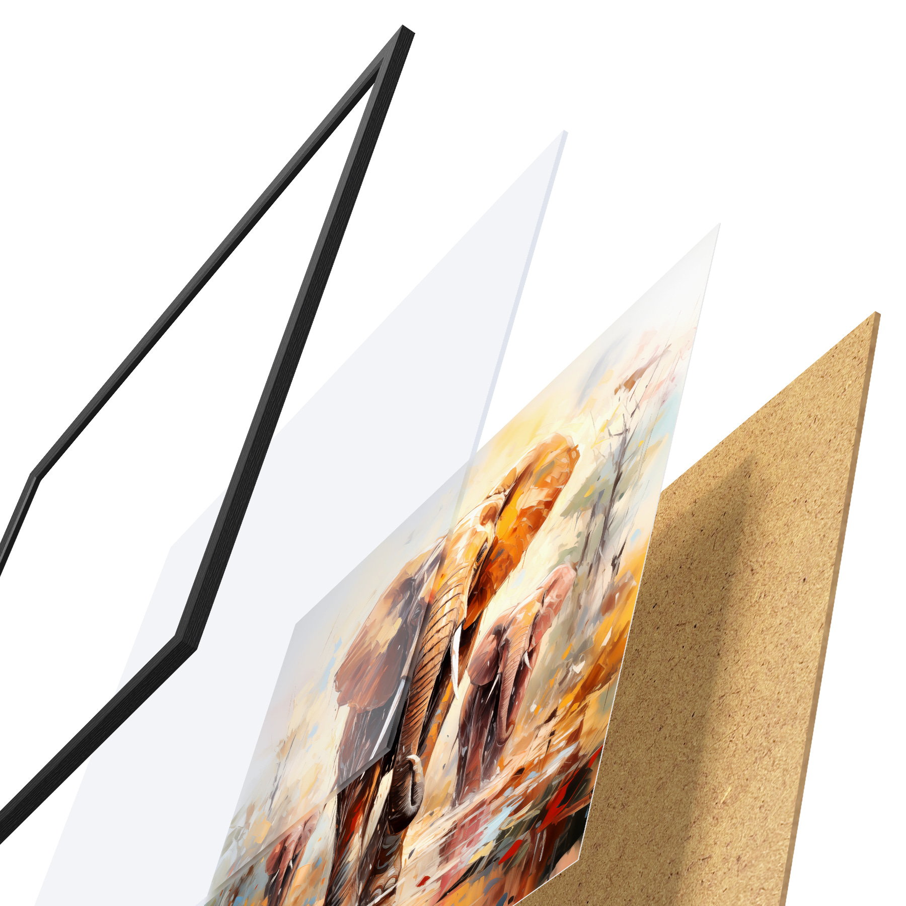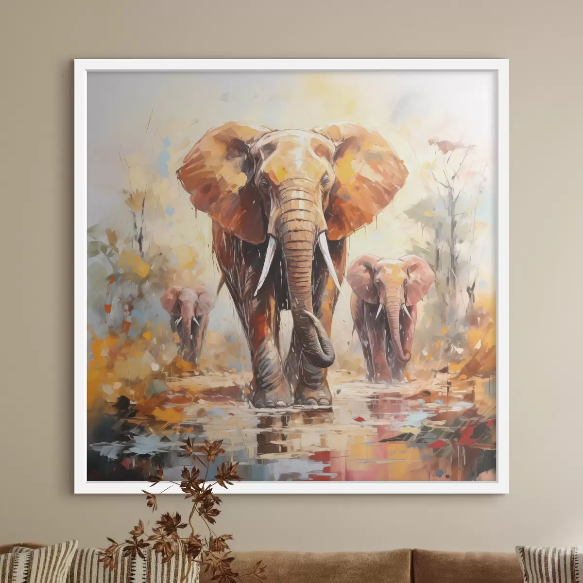 Poster Una manada de elefantes entre la sabana, pintura al óleo, arte abstracto f39573