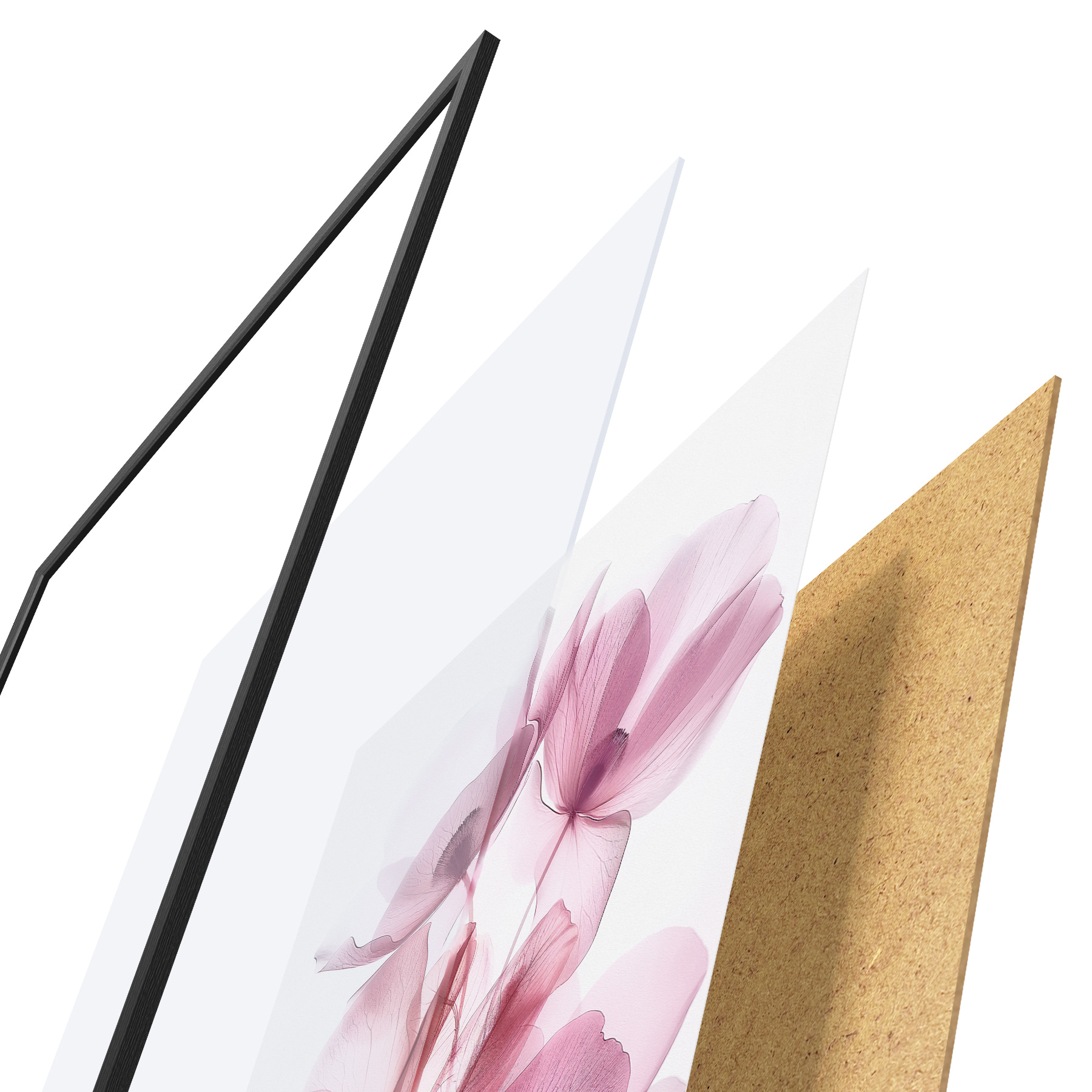 El póster consta de marco, plexiglás, imagen impresa y soporte de aglomerado. El póster puede colgarse inmediatamente en la pared gracias a los soportes de la parte posterior.