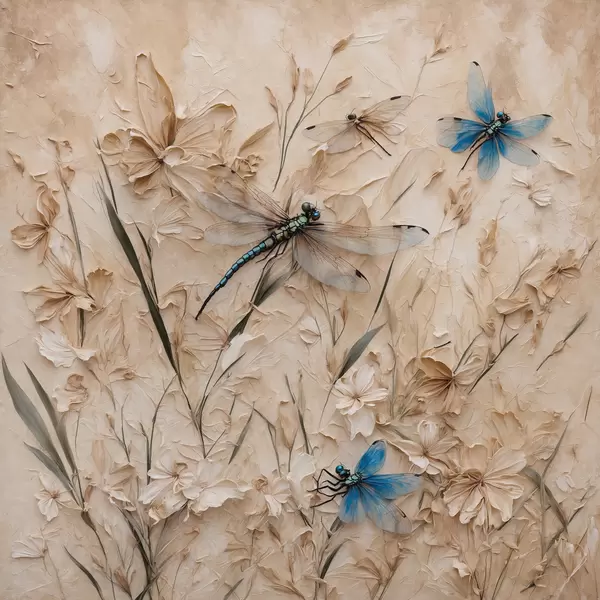 Poster Libélulas sobre fondo beige abstracto Nr f39600