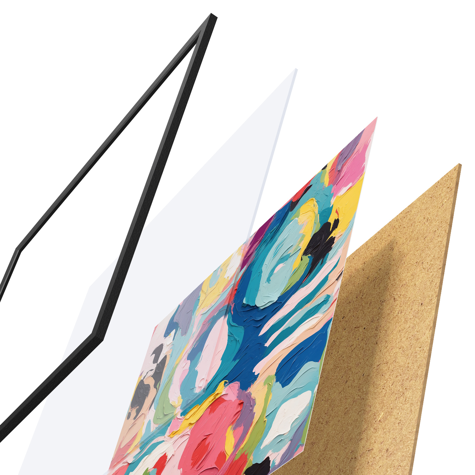 Vendemos cuadros en bastidor: se trata de un marco de madera sobre el que se extiende el lienzo. Este cuadro no necesita marco; puedes colgarlo directamente en la pared.