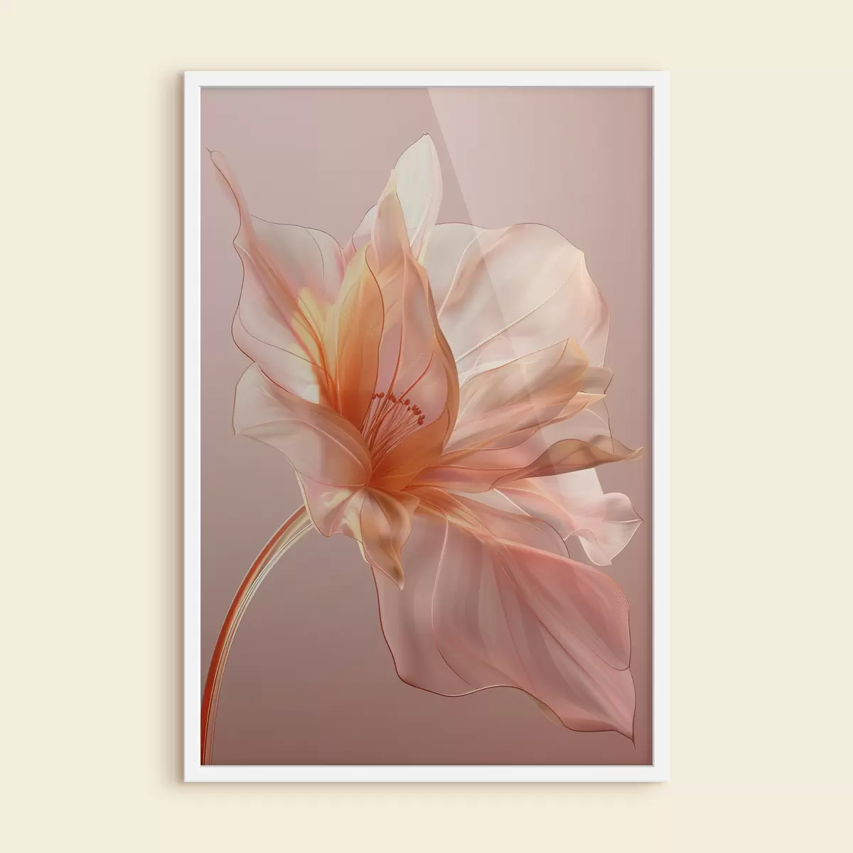 Poster Pétalo de flor de melocotón sobre un fondo rosa con líneas fluidas, minimalismo y detalles delicados. f39631