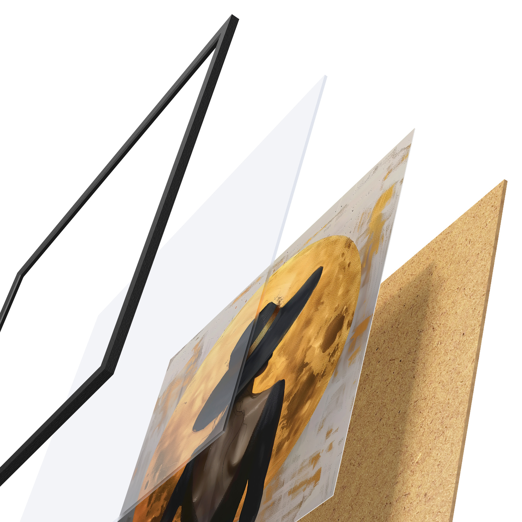 El póster consta de marco, plexiglás, imagen impresa y soporte de aglomerado. El póster puede colgarse inmediatamente en la pared gracias a los soportes de la parte posterior.