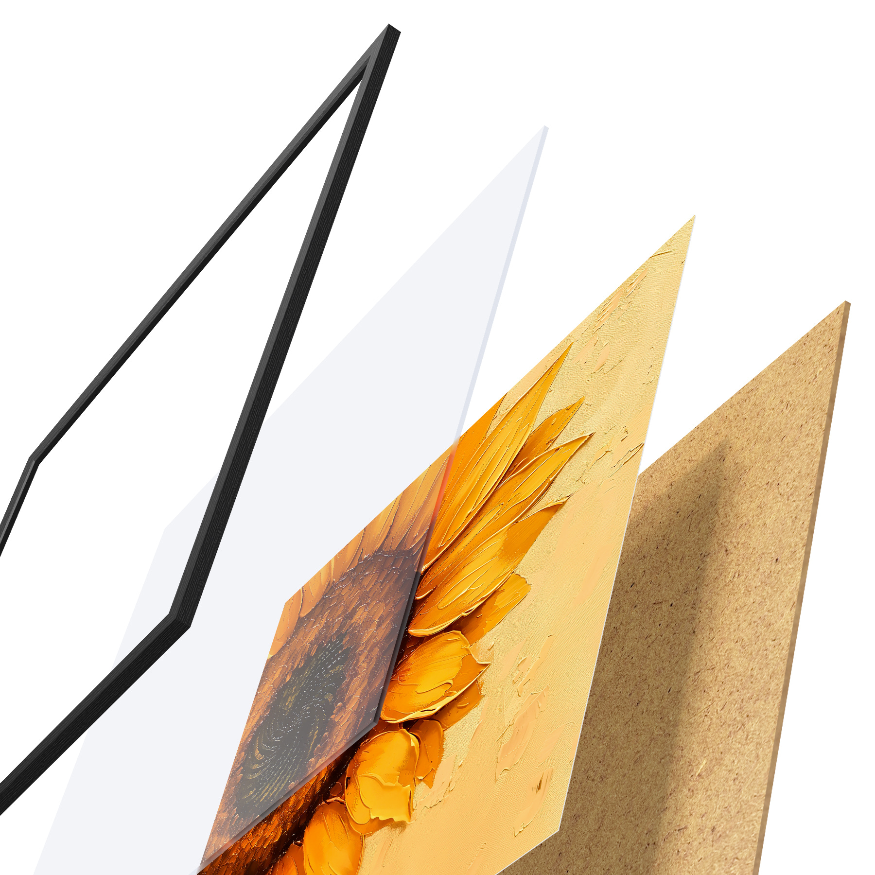 El póster consta de marco, plexiglás, imagen impresa y soporte de aglomerado. El póster puede colgarse inmediatamente en la pared gracias a los soportes de la parte posterior.