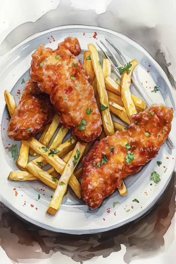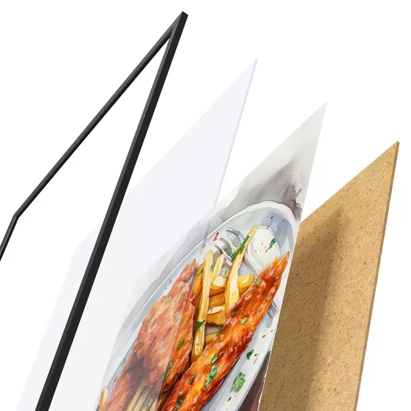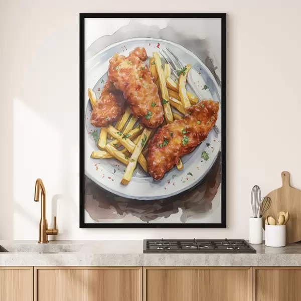 Poster Arte gastronómico en acuarela, papas fritas con pollo asado, delicioso Nr f39708