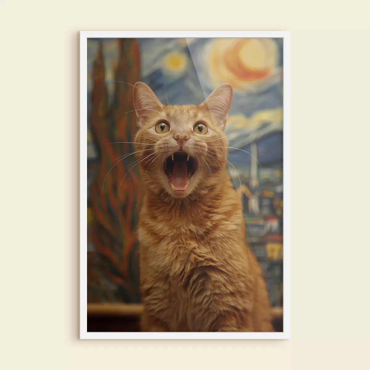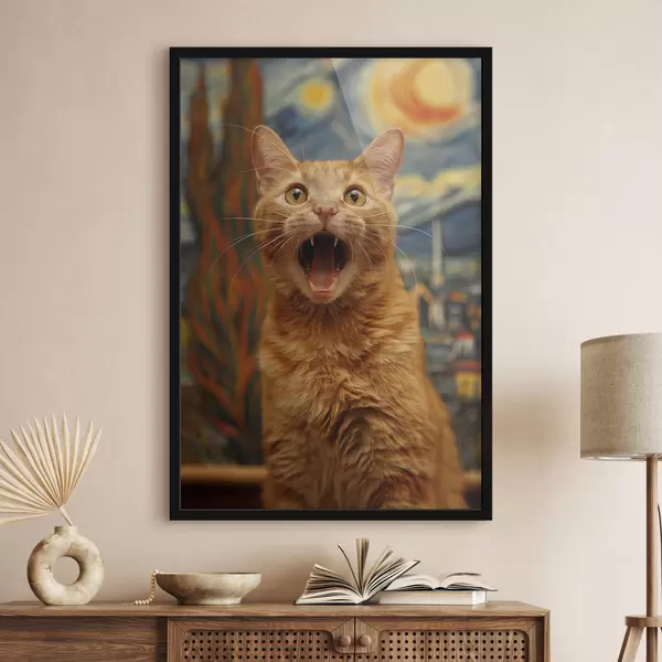 Poster Cuadro estilo Van Gogh de 'El grito' con un gato Nr f39724