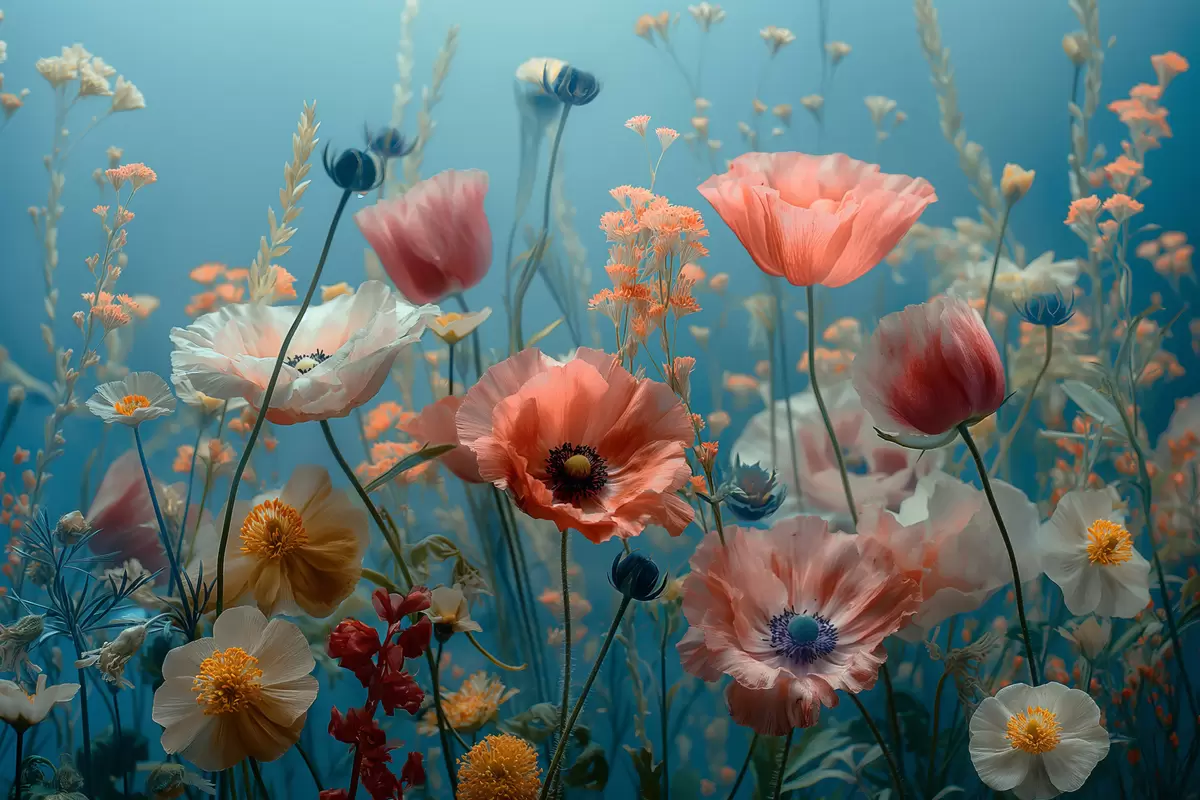 Poster Flores silvestres que incluyen amapolas, tulipanes y más. Nr f39752