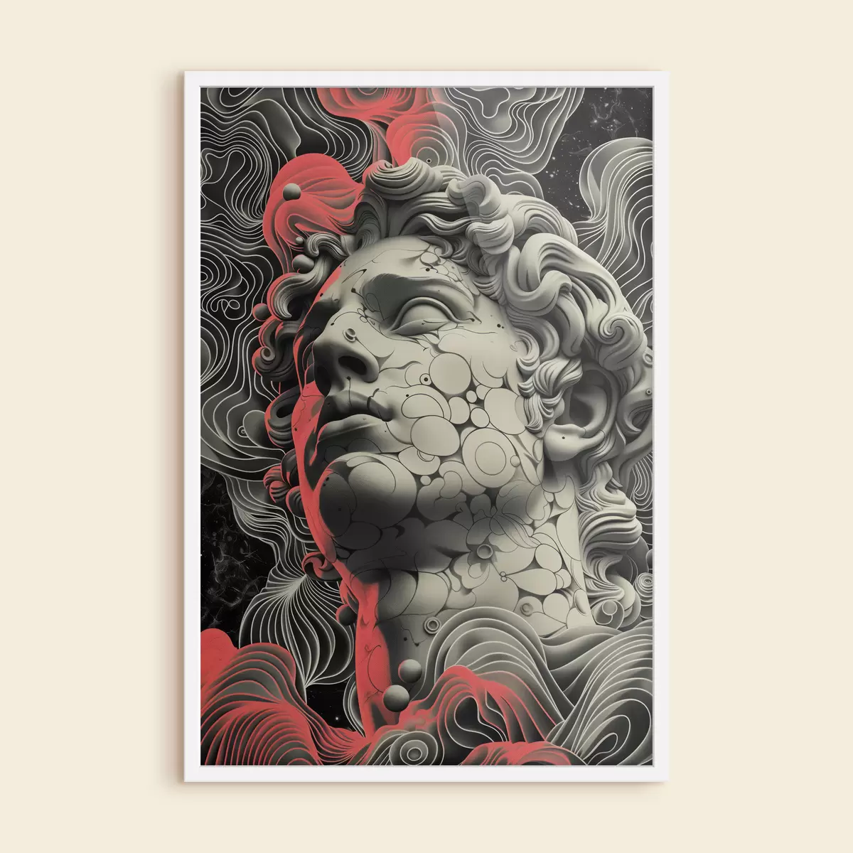 Poster Ilustración lineal en blanco y negro de la cabeza del dios griego Apolo en estilo pop art Nr f39763