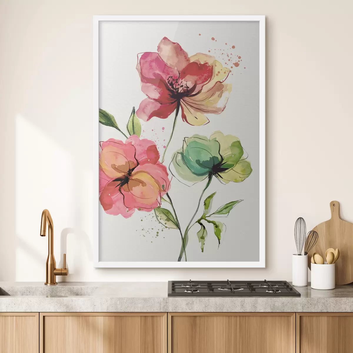 Poster Flores de acuarela con salpicaduras de pintura. Nr f39769