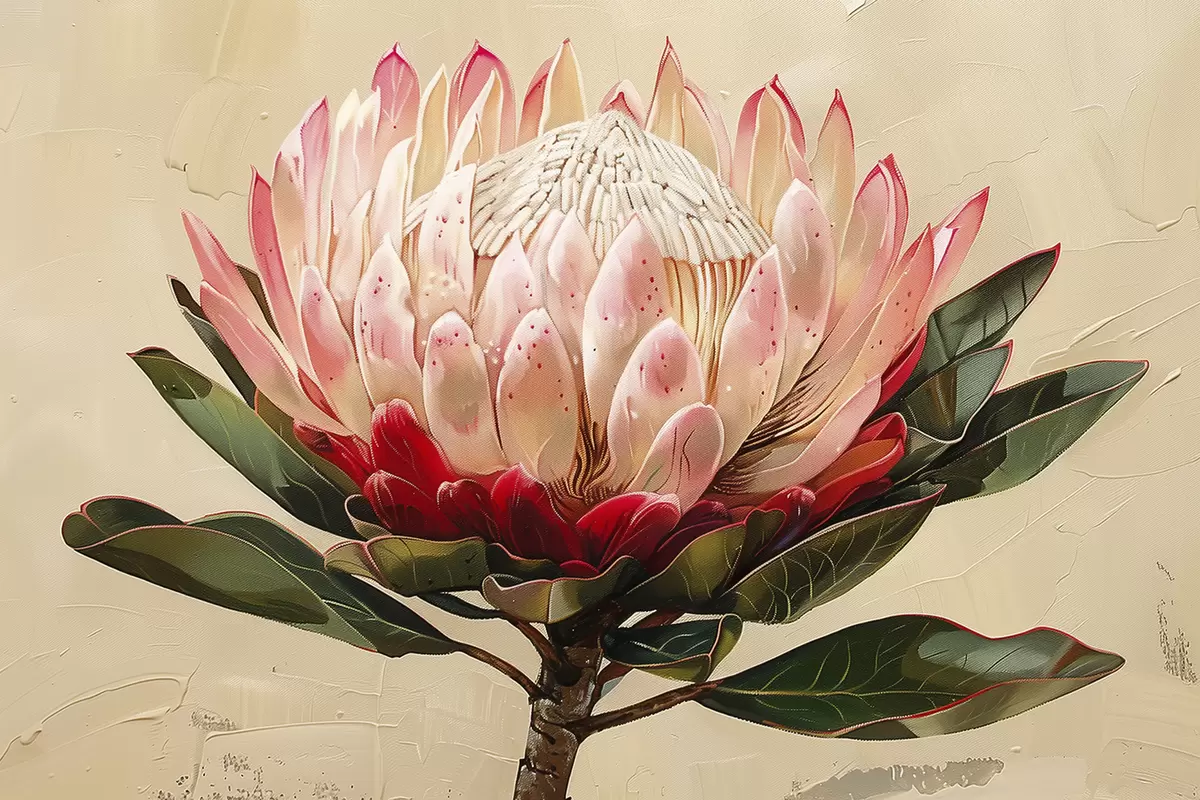 Poster Flor de protea, dibujo acrílico, floral, colores naturales suaves Nr f39780