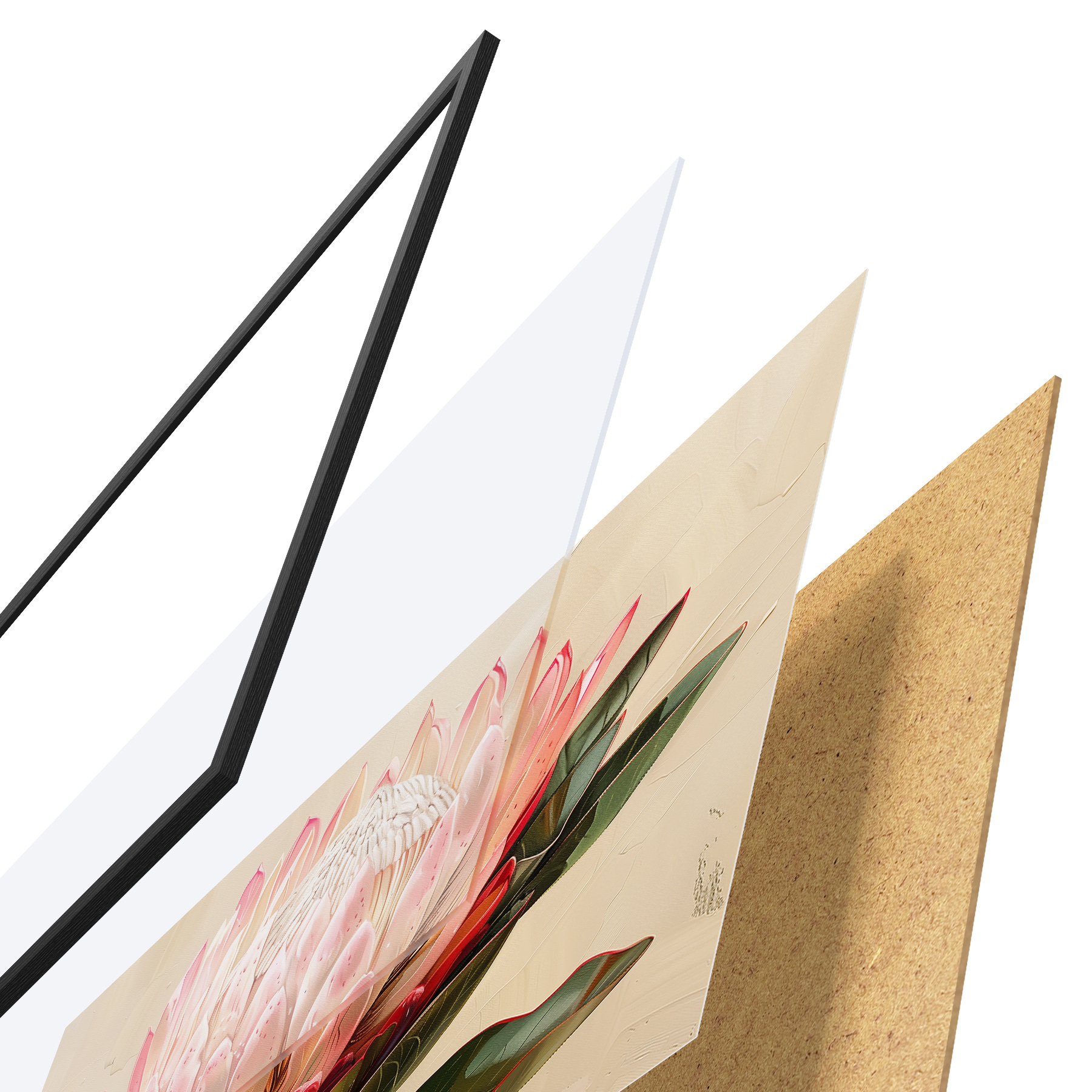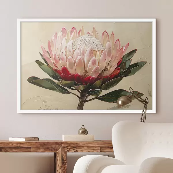 Poster Flor de protea, dibujo acrílico, floral, colores naturales suaves f39780