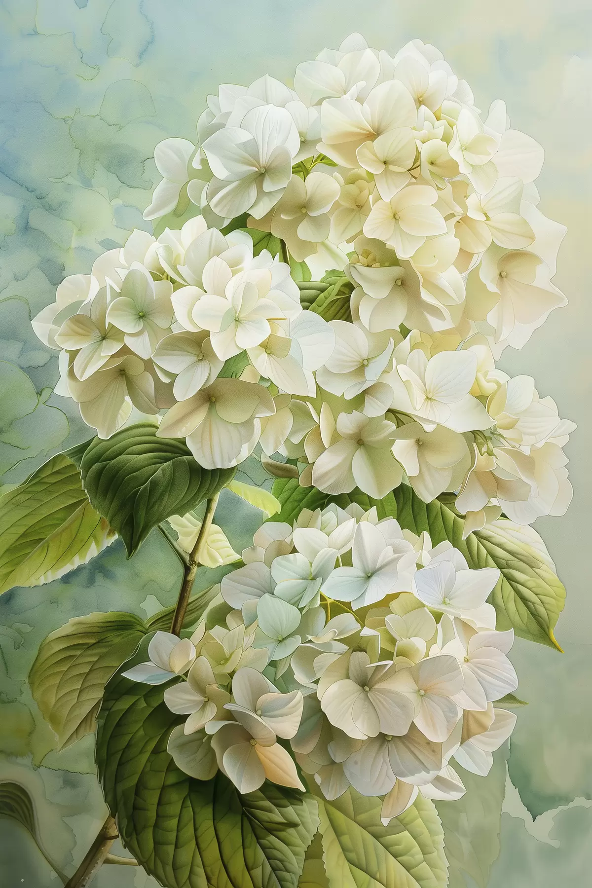 Poster Flor de hortensia, floral, colores naturales suaves, dibujo de acuarela f39782