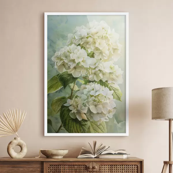 Poster Flor de hortensia, floral, colores naturales suaves, dibujo de acuarela Nr f39782