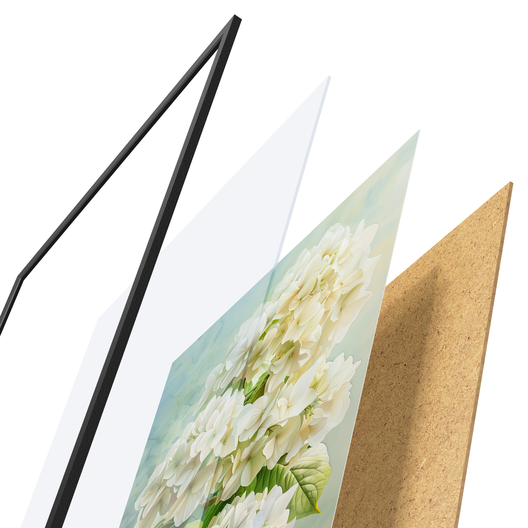 El póster consta de marco, plexiglás, imagen impresa y soporte de aglomerado. El póster puede colgarse inmediatamente en la pared gracias a los soportes de la parte posterior.