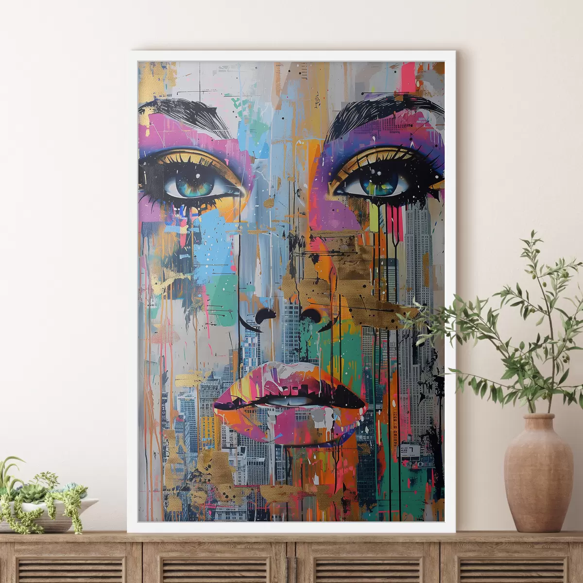 Poster Ojos azules y vista a la ciudad. Nr f39800