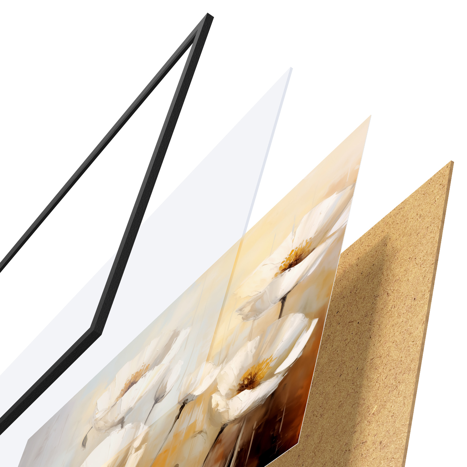 El póster consta de marco, plexiglás, imagen impresa y soporte de aglomerado. El póster puede colgarse inmediatamente en la pared gracias a los soportes de la parte posterior.