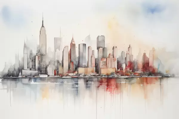 Poster Vista de la ciudad de Nueva York, siluetas de edificios, acuarela Nr f39828