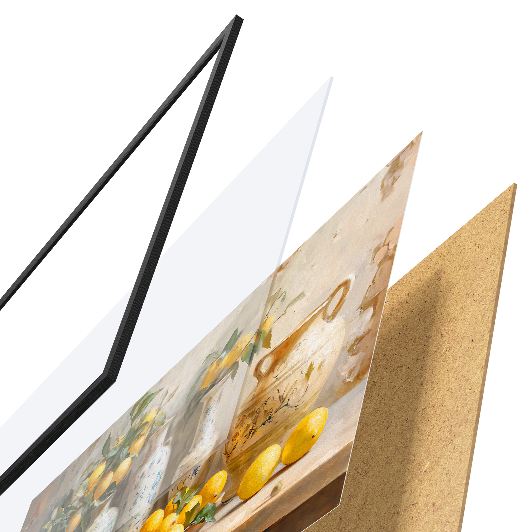 El póster consta de marco, plexiglás, imagen impresa y soporte de aglomerado. El póster puede colgarse inmediatamente en la pared gracias a los soportes de la parte posterior.