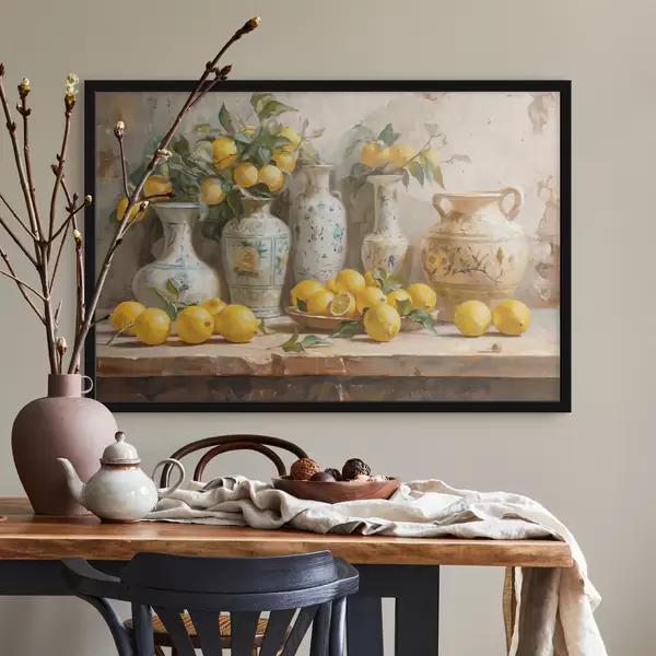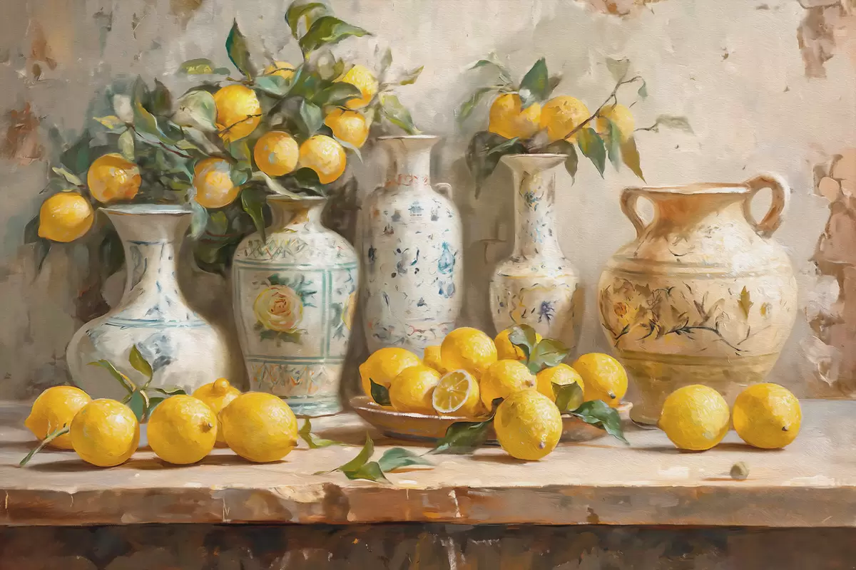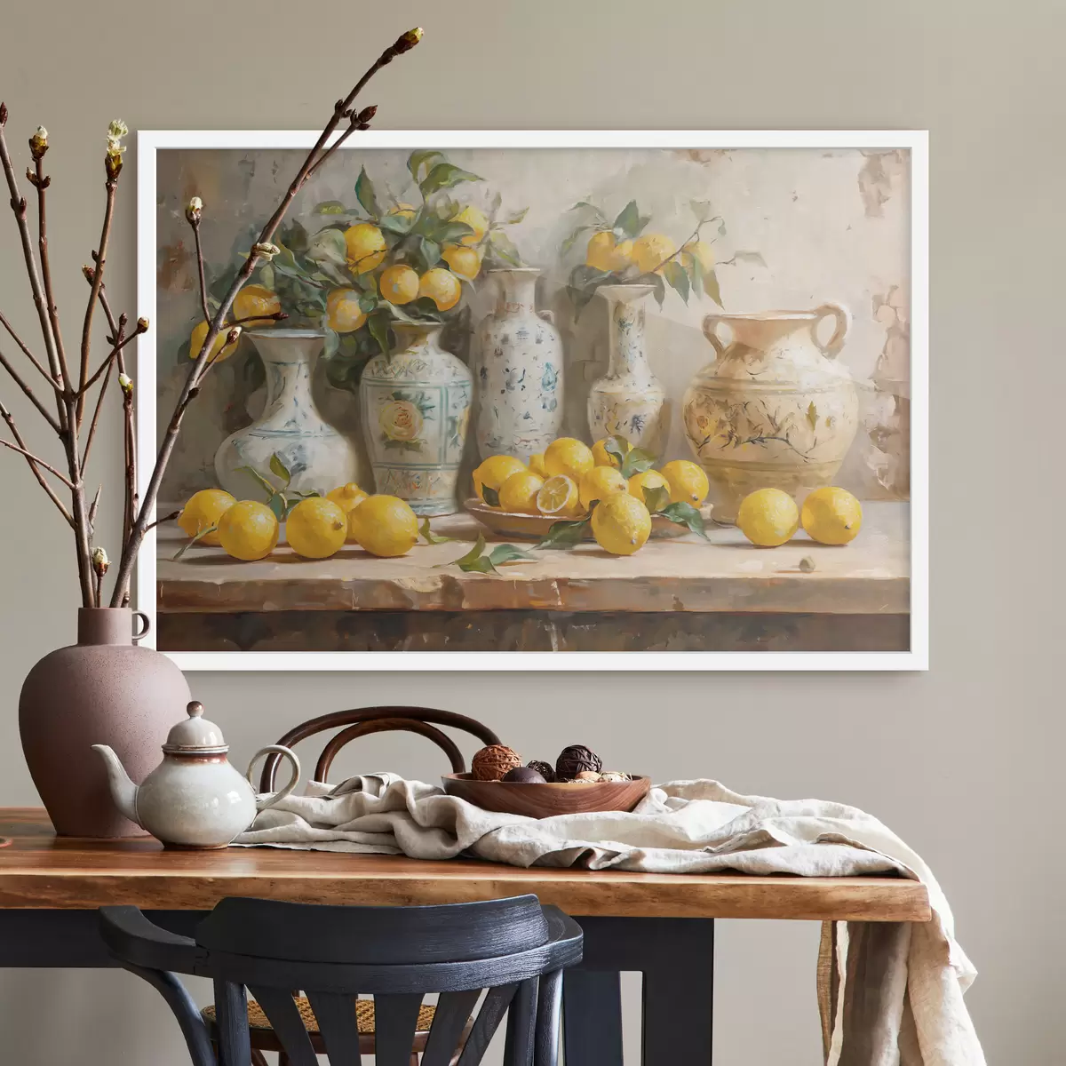 Poster Limones y jarrones antiguos sobre la mesa. Nr f39833