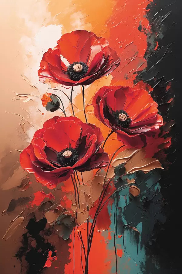 Poster Amapolas sobre fondo abstracto Nr f39845