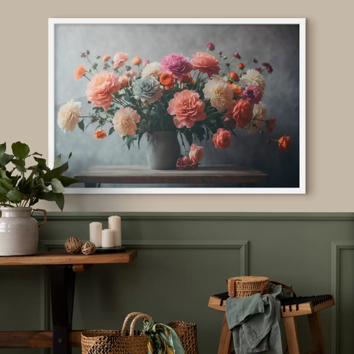 Poster Ramo de flores en un jarrón sobre una mesa f39859