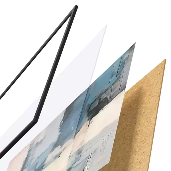 El póster consta de marco, plexiglás, imagen impresa y soporte de aglomerado. El póster puede colgarse inmediatamente en la pared gracias a los soportes de la parte posterior.