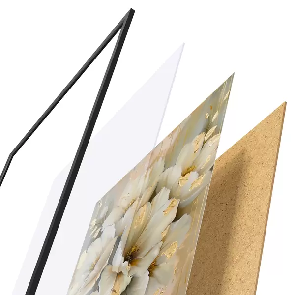 El póster consta de marco, plexiglás, imagen impresa y soporte de aglomerado. El póster puede colgarse inmediatamente en la pared gracias a los soportes de la parte posterior.
