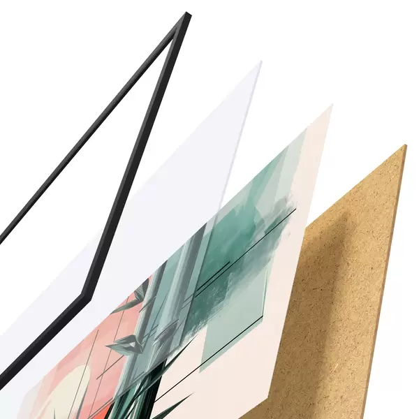 El póster consta de marco, plexiglás, imagen impresa y soporte de aglomerado. El póster puede colgarse inmediatamente en la pared gracias a los soportes de la parte posterior.