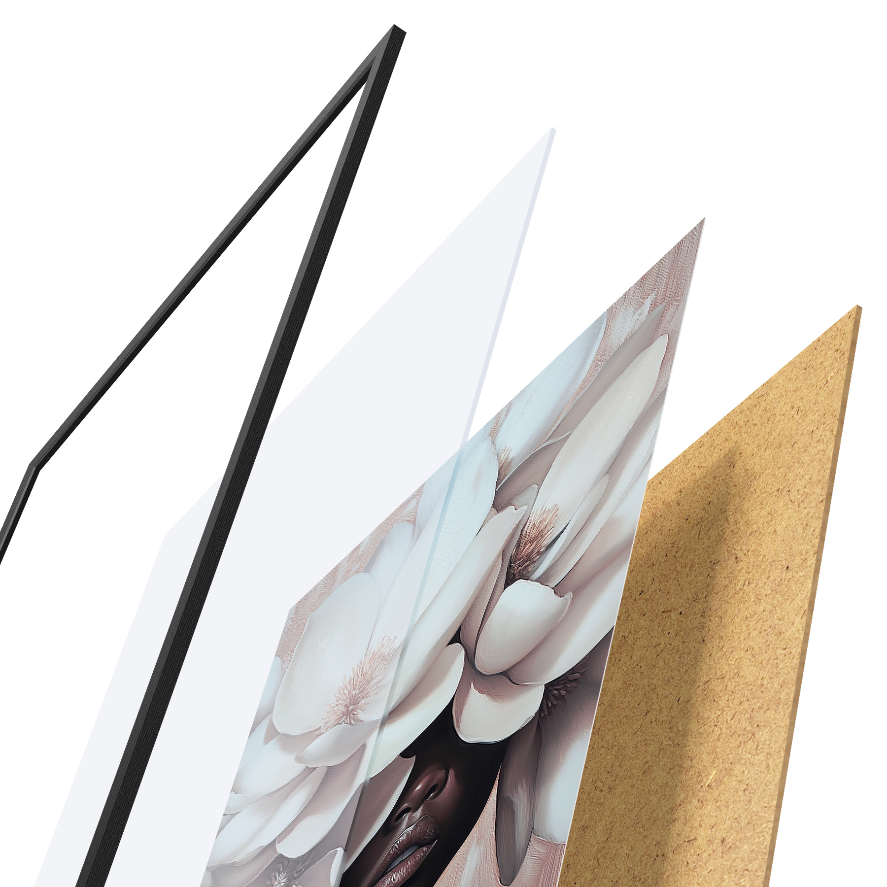 El póster consta de marco, plexiglás, imagen impresa y soporte de aglomerado. El póster puede colgarse inmediatamente en la pared gracias a los soportes de la parte posterior.