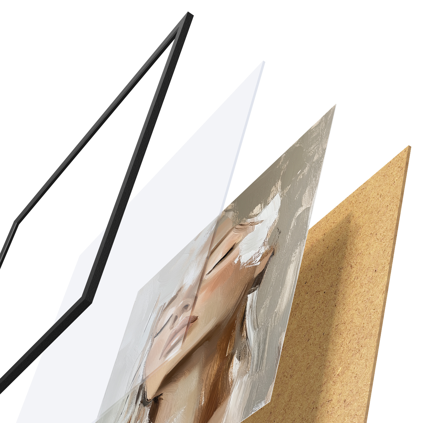 El póster consta de marco, plexiglás, imagen impresa y soporte de aglomerado. El póster puede colgarse inmediatamente en la pared gracias a los soportes de la parte posterior.