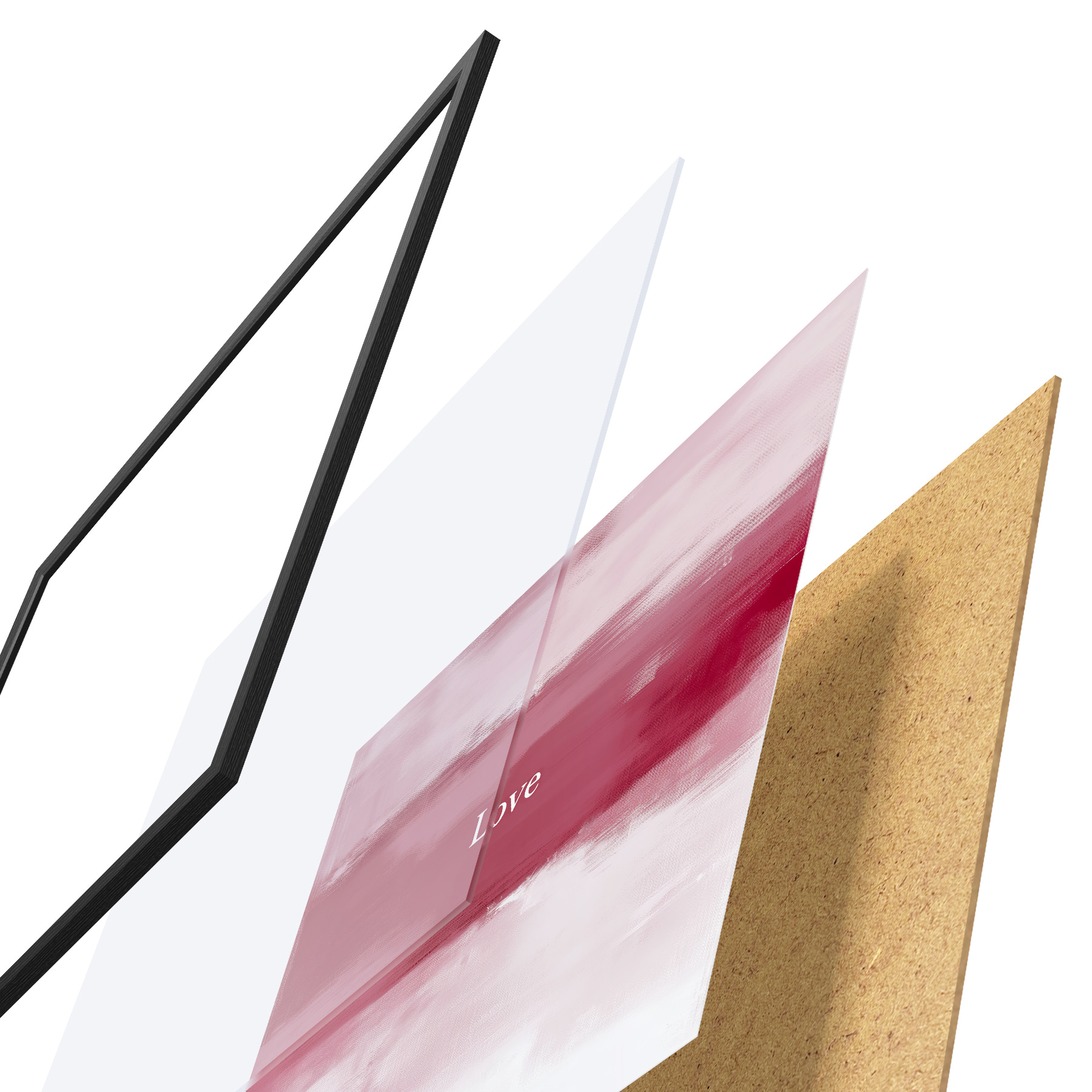 El póster consta de marco, plexiglás, imagen impresa y soporte de aglomerado. El póster puede colgarse inmediatamente en la pared gracias a los soportes de la parte posterior.