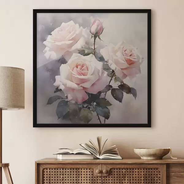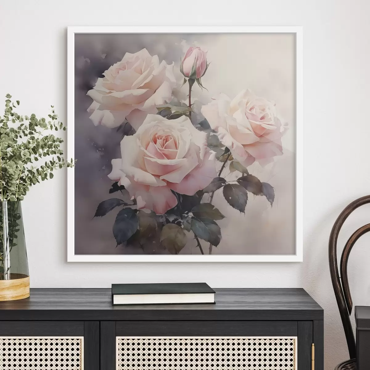 Poster Rosas rosas blancas sobre fondo oscuro de acuarela Nr f39927
