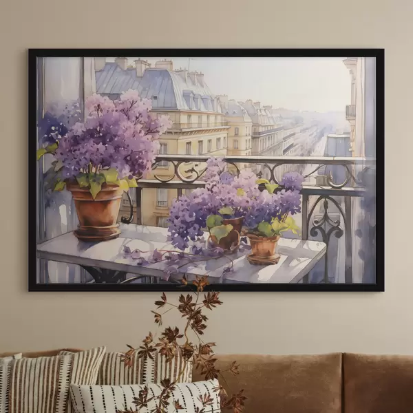 Poster Violetas en maceta en un balcón de París acuarela Nr f39931