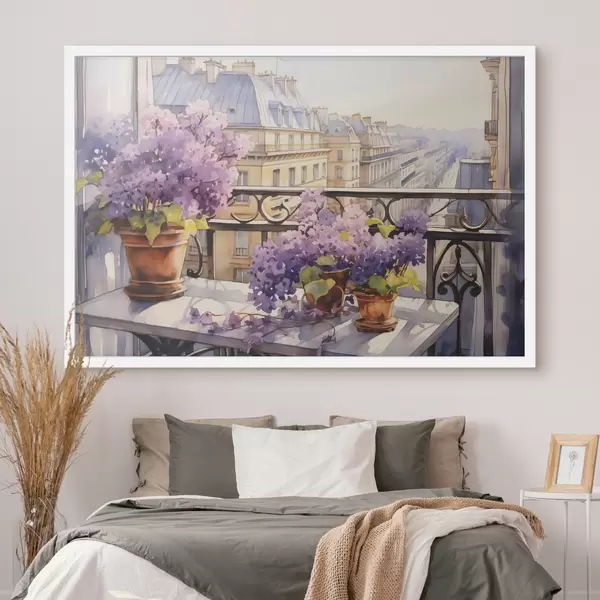 Poster Violetas en maceta en un balcón de París acuarela Nr f39931