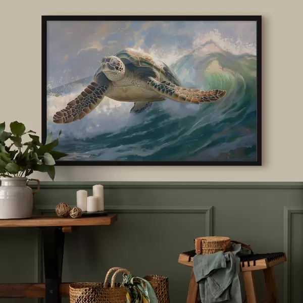 Poster Tortuga, agua, verde, azul. Nr f40001