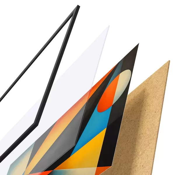El póster consta de marco, plexiglás, imagen impresa y soporte de aglomerado. El póster puede colgarse inmediatamente en la pared gracias a los soportes de la parte posterior.