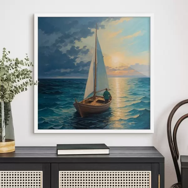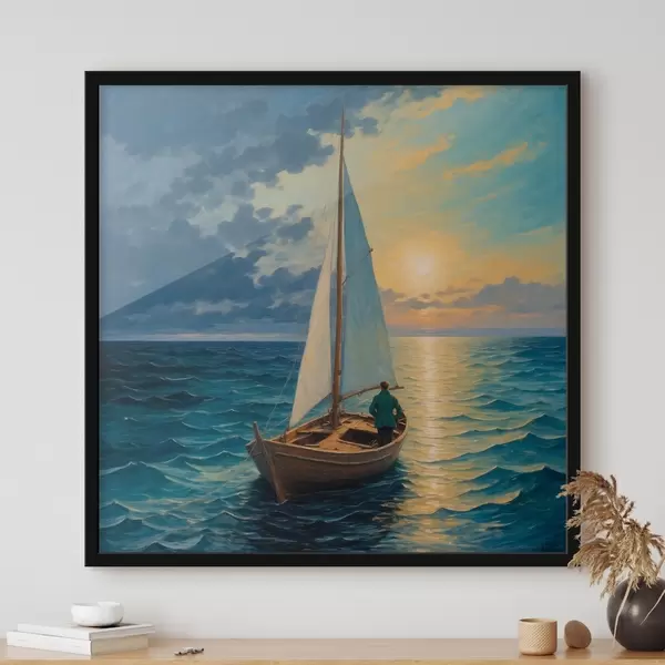 Poster Un hombre a la deriva en el mar en una barca Nr f40053