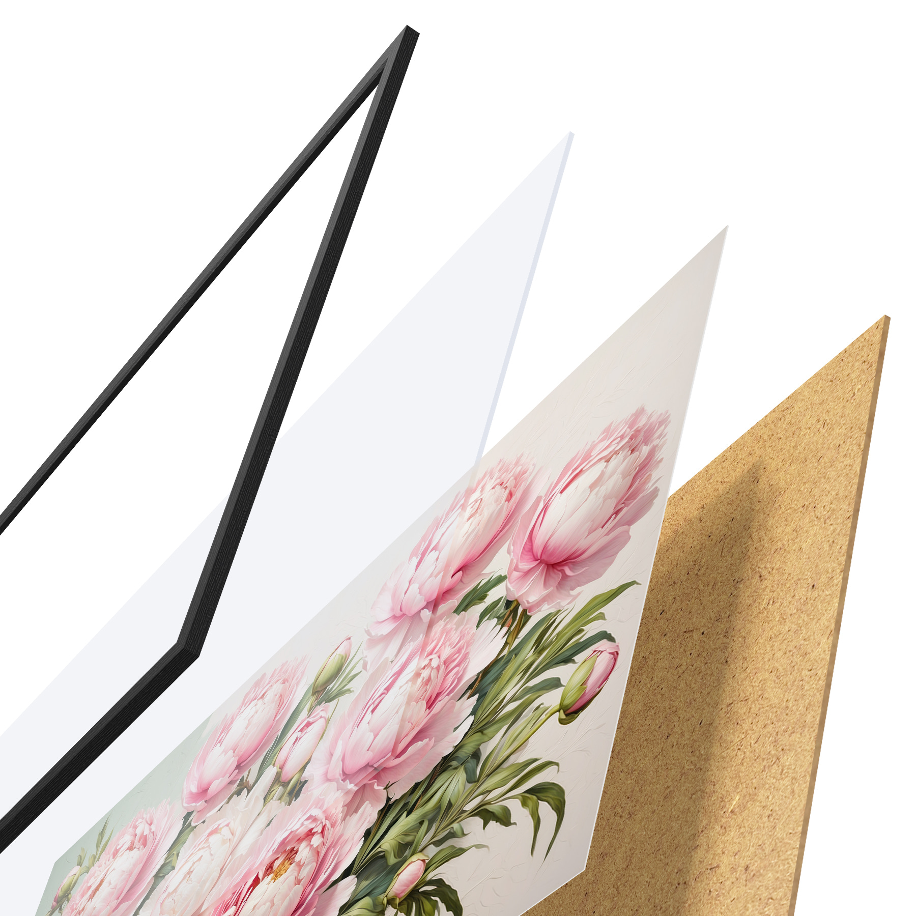 El póster consta de marco, plexiglás, imagen impresa y soporte de aglomerado. El póster puede colgarse inmediatamente en la pared gracias a los soportes de la parte posterior.