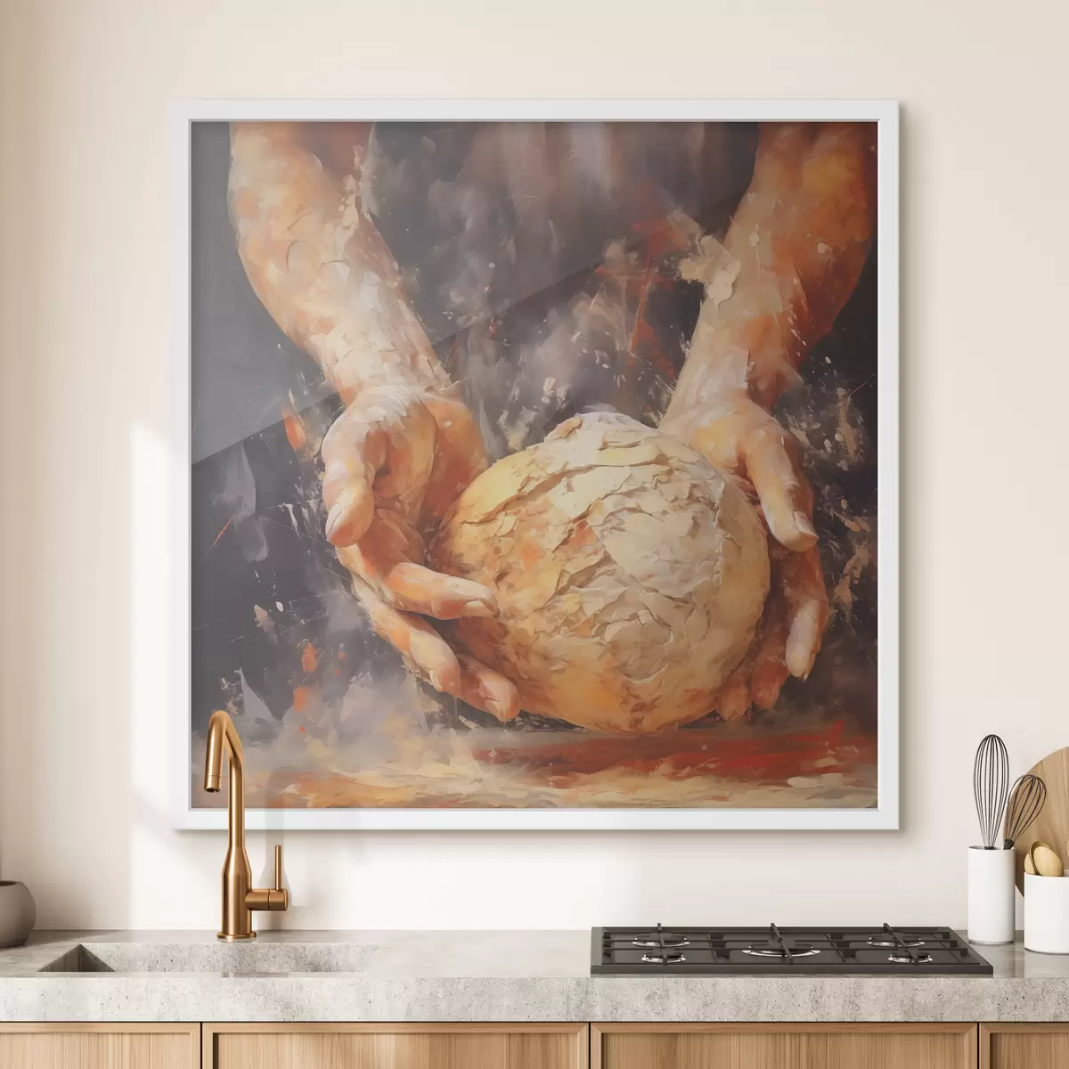 Poster Manos de panadero sujetando la masa, imitación de una pintura al óleo f40095